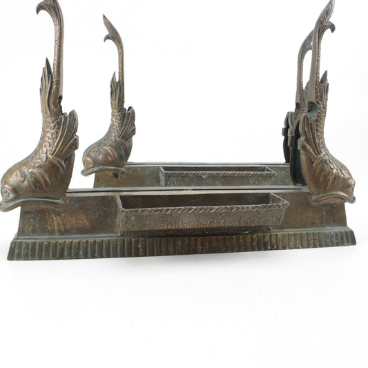 Bronze Firedog Tool Rests with Regency Style Dolphin Fish Motif