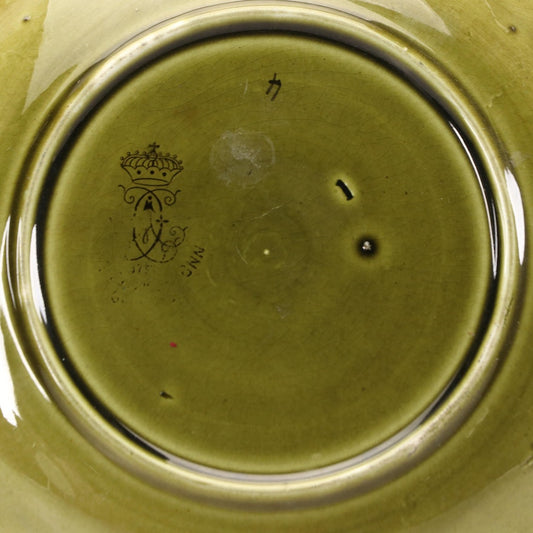 Rare Majolica Plate Green with Pink Flower