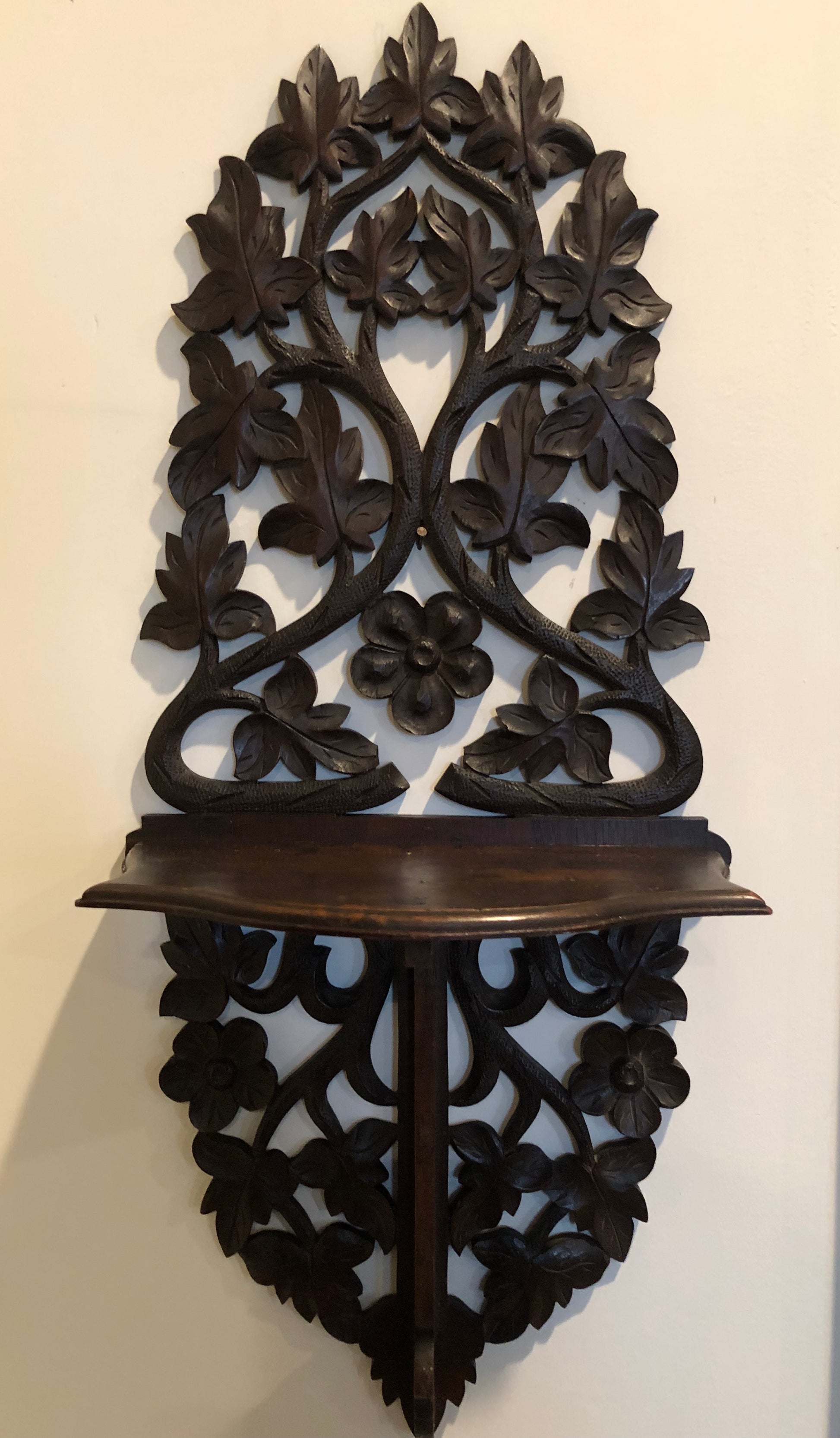 Antique Carved Black Forest Wood Wall Bracket with Shelf