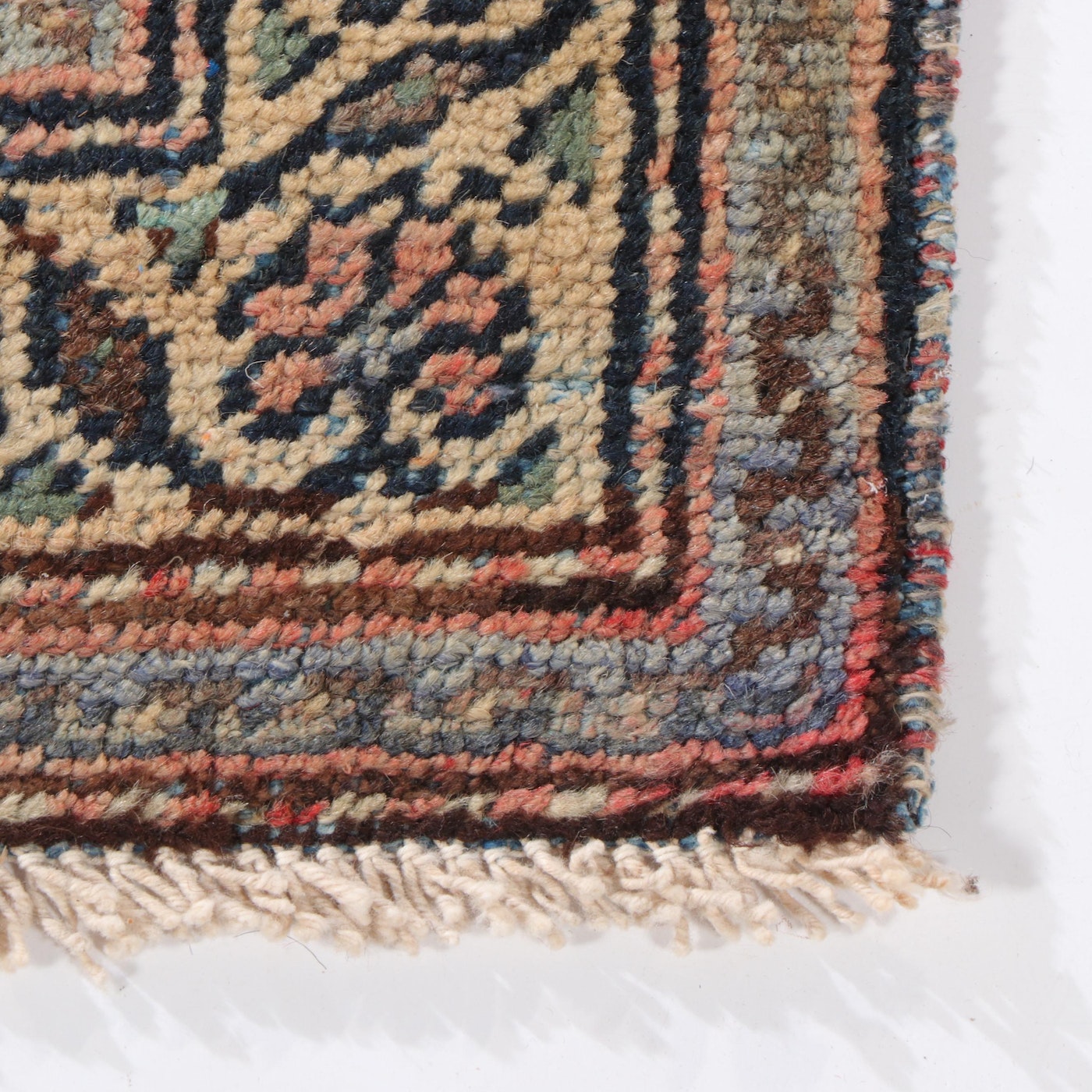 Vintage hand knotted Persian Hamadan rug. Tones of blush and teal.