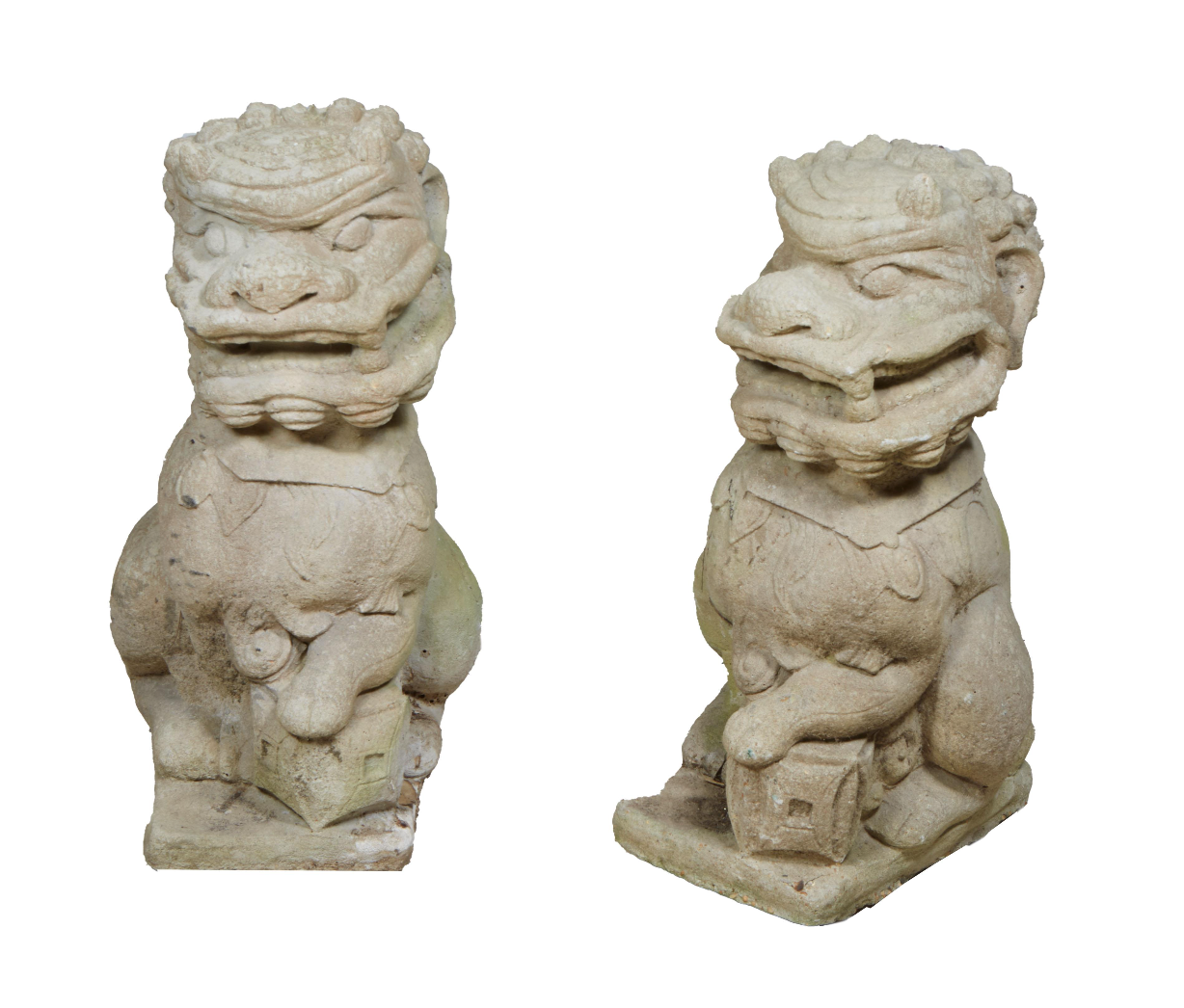 Large pair of cast stone Foo Dogs, circa 20th century.